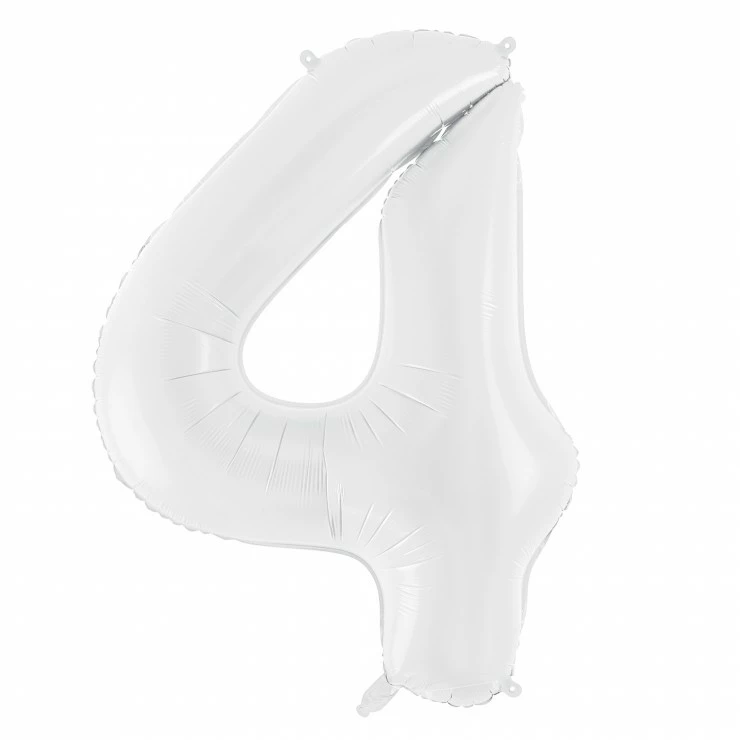 Ce grand ballon mylar blanc est en forme de chiffre 4.