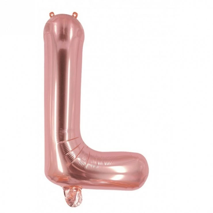 Ce ballon en forme de lettre L mesure environ 1 mètre et est de couleur métallisée rose gold.