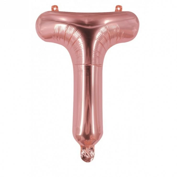 Ce ballon lettre T en aluminium rose gold mesure environ 100 cm.