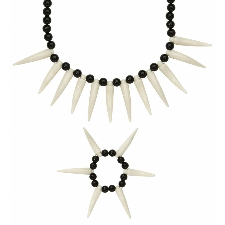 Ce set comprend un collier et un bracelet en fausse dents.