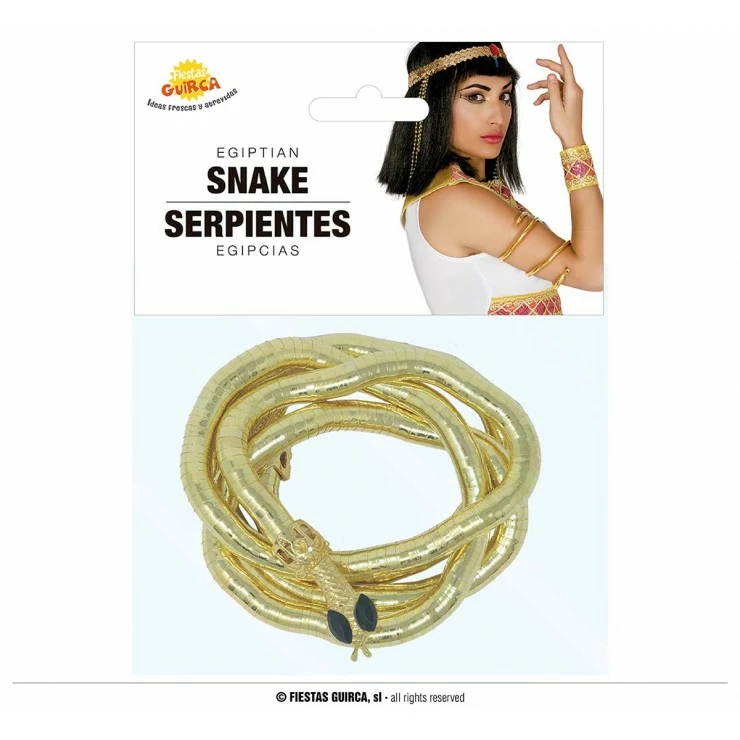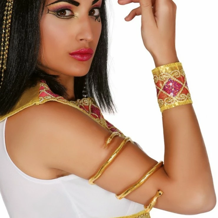 Enroulez à votre guise ce serpent flexible autour de votre bras pour compléter avec élégance votre déguisement de Cléopâtre pour carnaval ou une fête sur le thème de l’antiquité.