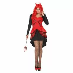 Ce déguisement de diablesse pour adulte comprend une robe sexy rouge et noire et un serre-tête cornes de diable.
