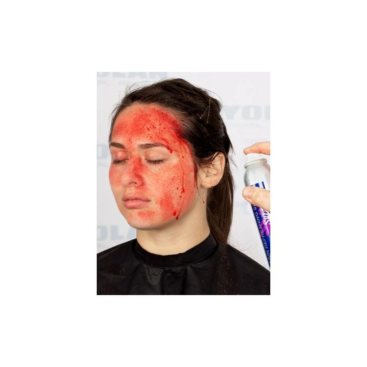 Le sang en poudre doit être appliquée en couche fine et uniforme sur une zone sèche. Il est préférable de l’appliquer avec une houppette ou un pinceau à poudre. Appliqué de cette manière il est alors pratiquement invisible. Dès que la zone recouverte sera en contact avec un objet humide, un filet de sang artificiel apparaitra immédiatement (filet de sang plus ou moins important selon la quantité d’humidité apportée).