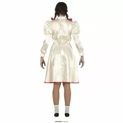 Ce costume comprend une robe de poupée blanche et rouge.